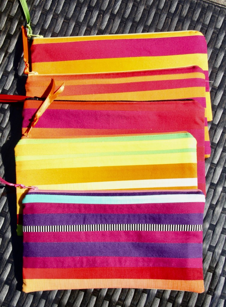 I just want to write a quick post to showcase these zippered bags that a lovely quilter has made. As I mentioned in a previous blog post, my young friend Maggie, is making 180 zippered pouches to donate to a school in South Africa. She is filling each bag with donated school supplies and delivering them to the school. In my post for the Show Your Stripes blog hop, I invited anyone interested to help make some zippered pouches.